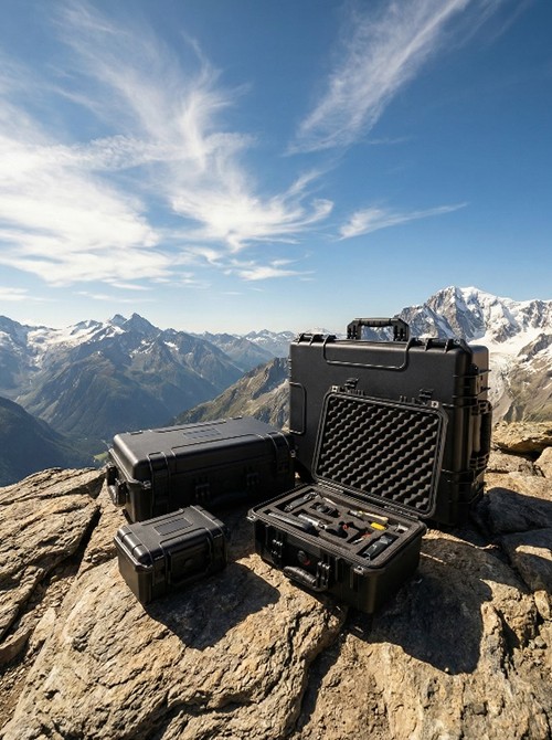 Production de photographie et de films : appareils photo professionnels, objectifs, équipements d'éclairage et matériel de photographie aérienne pour le transport et le stockage sur le terrain, garantissant une protection contre les intempéries et les vibrations de la route.