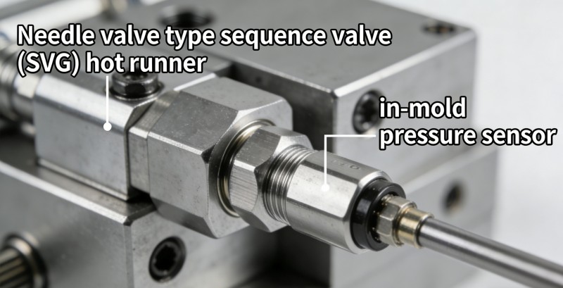 1. Technologie de contrôle de température de précision indépendante multizone Défi : Les produits complexes présentant des variations significatives d'épaisseur de paroi d'une zone à l'autre nécessitent une compensation de température distincte pour le retrait ; Les matériaux thermosensibles (par exemple PC, PMMA) présentent une extrême sensibilité aux fluctuations de température. Solution : Mettre en place des systèmes de « contrôle indépendant de la température par buse » ou encore de « contrôle de température des buses multi-segments ». Utilisez des serpentins de chauffage et des thermocouples à haute réponse et haute stabilité, combinés à des algorithmes adaptatifs PID, pour contrôler strictement les fluctuations de température à chaque point de contrôle dans une plage de ±0,5 °C, fournissant ainsi l'assurance fondamentale de l'environnement thermique pour un moulage de haute qualité. 2. Système de contrôle dynamique de la pression et de la séquence Défi : Remplissage inégal des cavités dans les moules multi-empreintes, ou produits nécessitant des séquences de remplissage spécifiques pour éliminer les lignes de soudure et garantir la résistance. Solution : Intégrez des « canaux chauds à obturateur séquentiel (SVG) » avec des « capteurs de pression dans le moule ». Contrôlez par programme la séquence d'ouverture et la course de chaque obturateur de vanne pour guider activement les chemins d'écoulement de la matière fondue. Combiné avec un retour de pression de cavité en temps réel pour ajuster les paramètres d'injection, réalisant un véritable moulage scientifique.